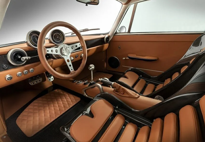 After more than 8,000 hours of work by 32 artisans, the entire bodywork was rebuilt entirely in carbon fiber, weighing just 95 kg. The result is an ultra-light structure with perfectly smooth surfaces, enhancing both performance and visual purity.